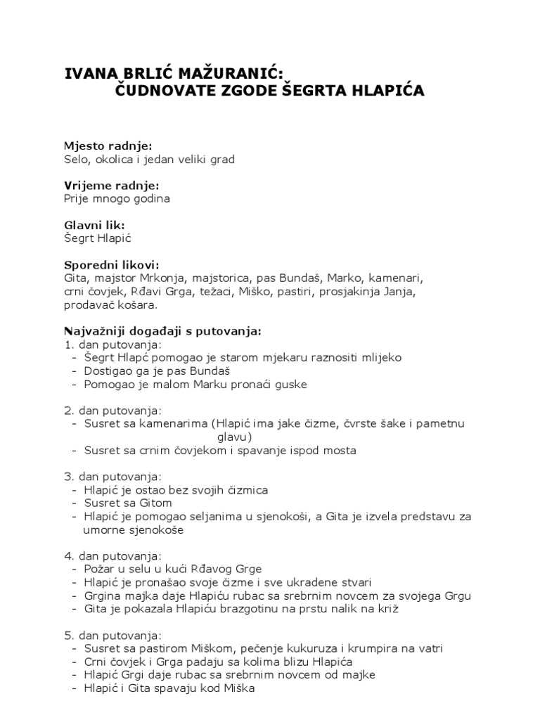 Cudnovate Zgode Segrta Hlapica Ivana Brlic Mazuranic Lektire