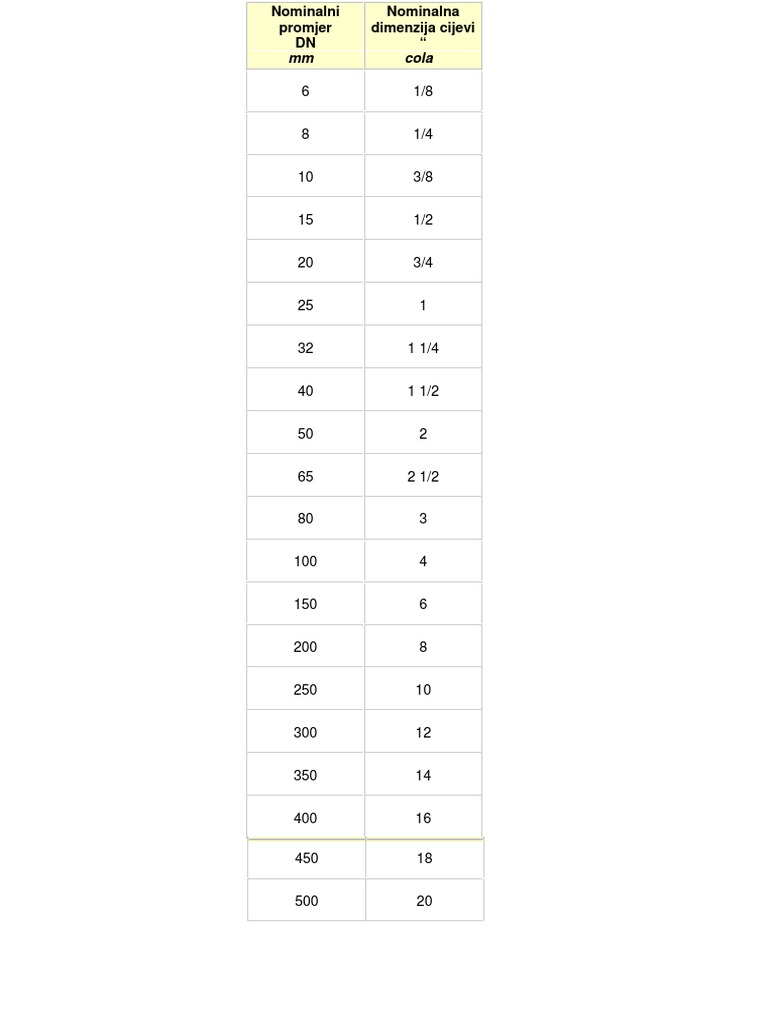 Dimenzije Cijevi