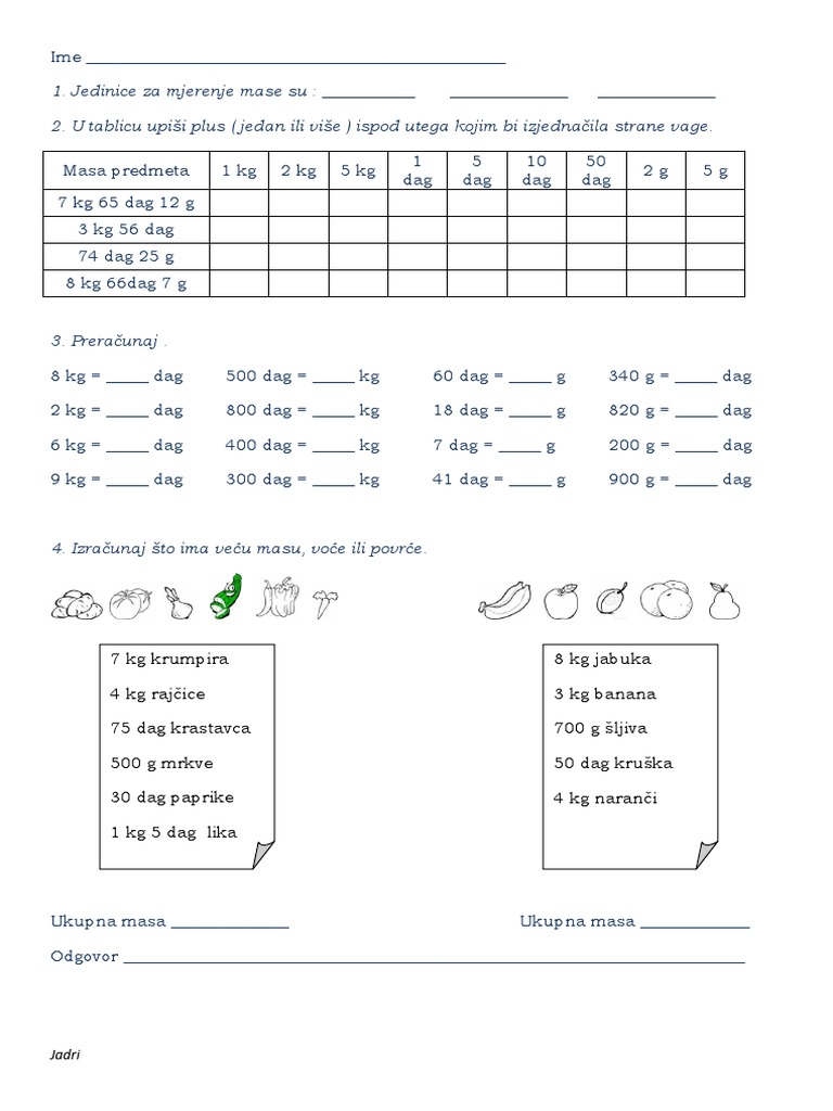1 Jedinice Za Mjerenje Mase Su 2 U Tablicu Upisi Plus