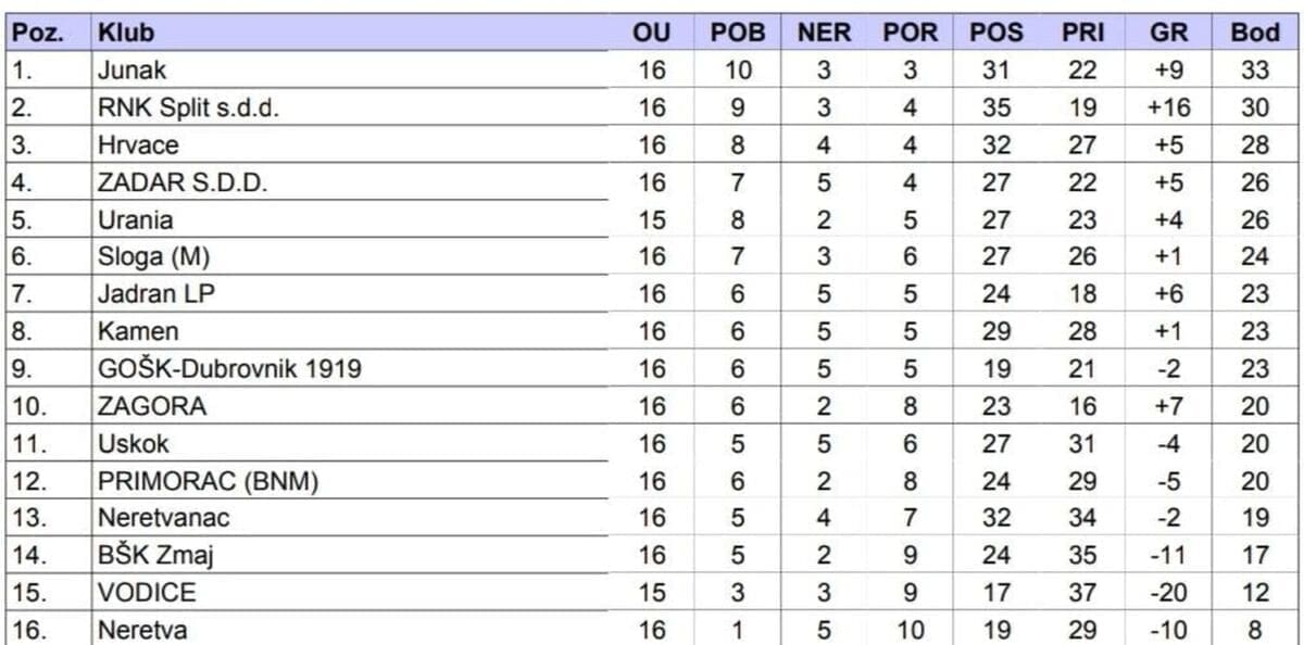 3 Hnl Jug Tablica 3 Hnl Jug Poredak Nakon Dva Facebook