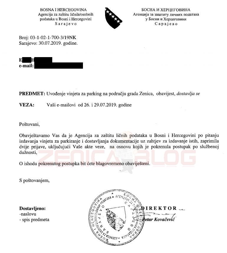 Drzavna Agencija Za Zastitu Podataka Potvrdila Pokrenut Postupak Protiv Jp Parking Servis Zenicablog