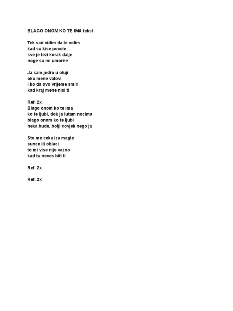 Blago Onom Ko Te Ima Tekst Toni Cetinski