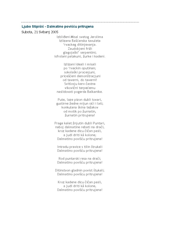 Ljubo Stipisic Dalmatino Poviscu Pritrujena