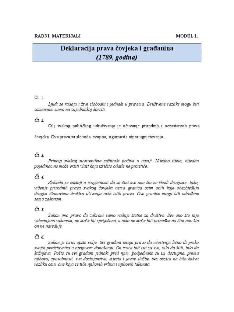 Deklaracija O Pravima Covjeka I Građanina 1789 Zanima Vas