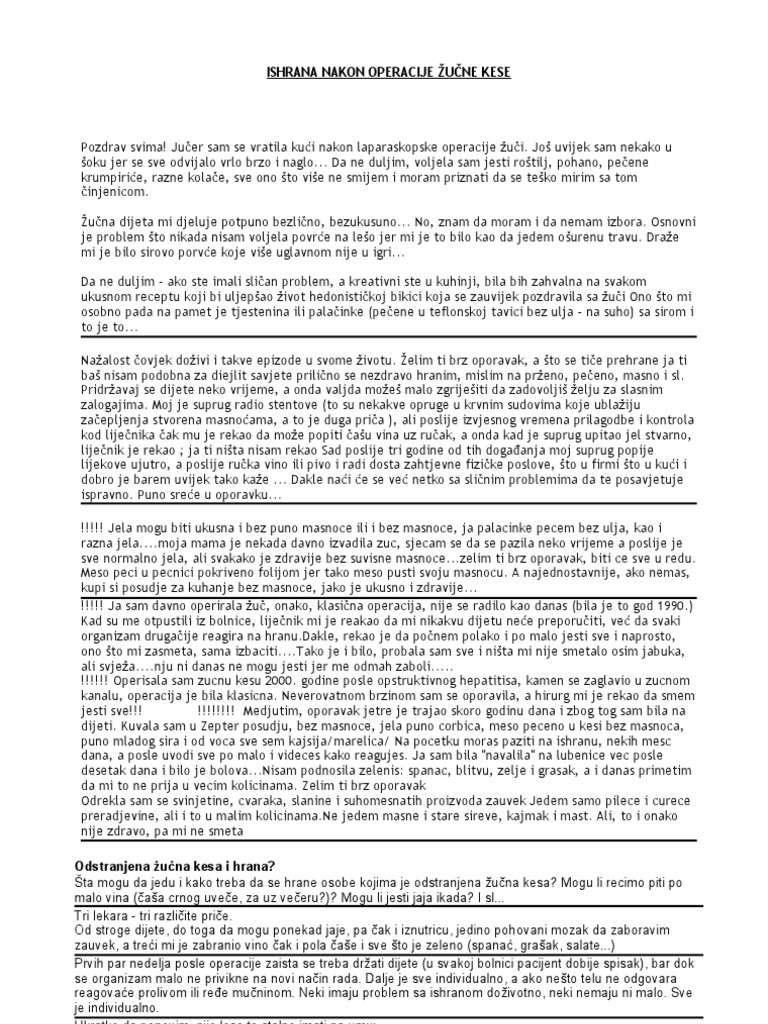 Opusteno Ishrana I Dijeta Nakon Operacije Zuci