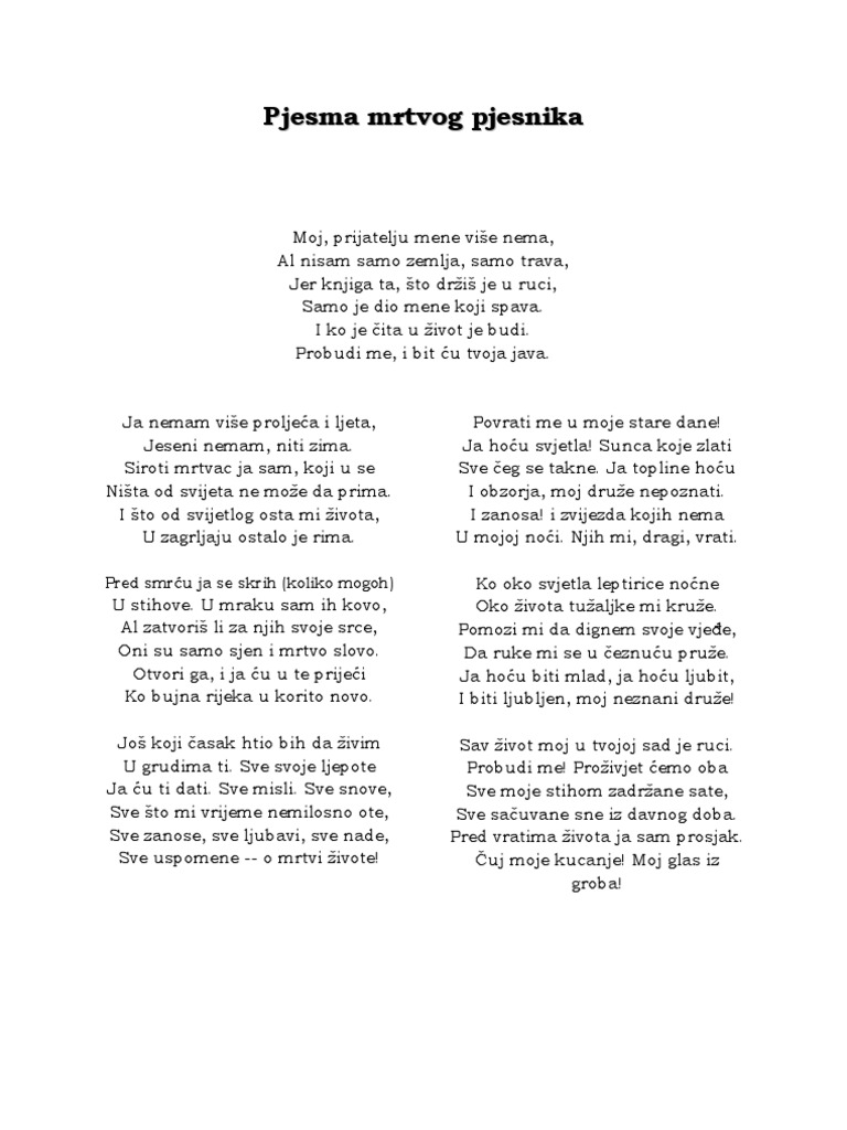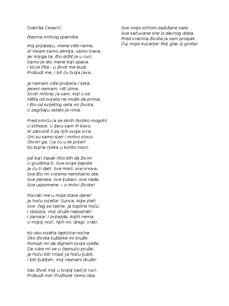 Pjesma Mrtvog Pjesnika Dobrisa Cesaric