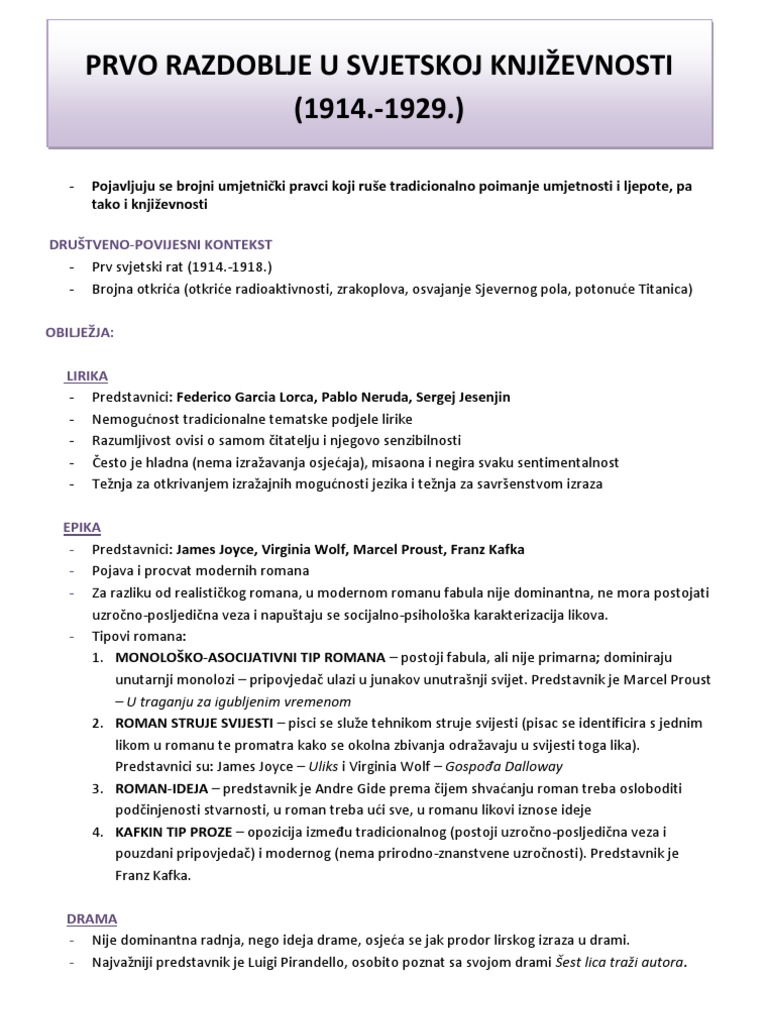 Prvo Razdoblje U Svjetskoj Knjizevnosti 1914 1929