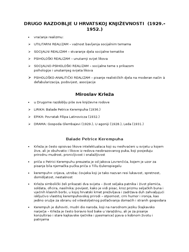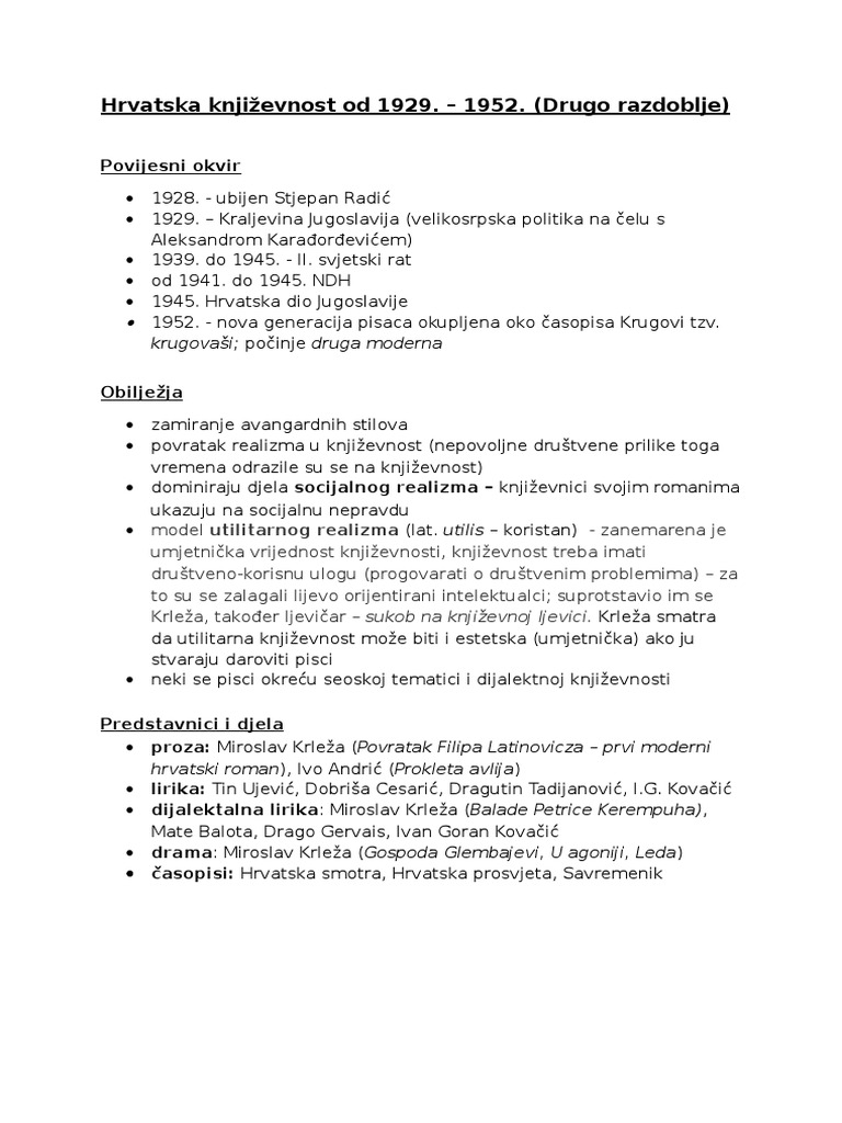 Hrvatska Knjizevnost Od 1929 1952 Drugo Razdoblje