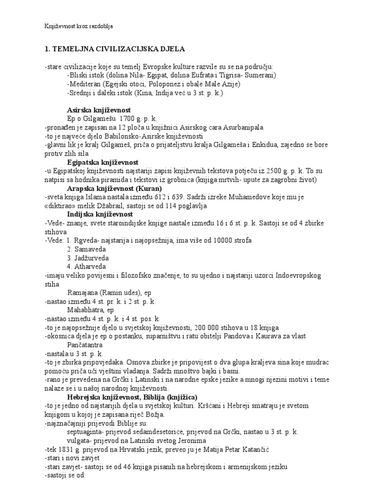 Knjizevnost Kroz Razdoblja