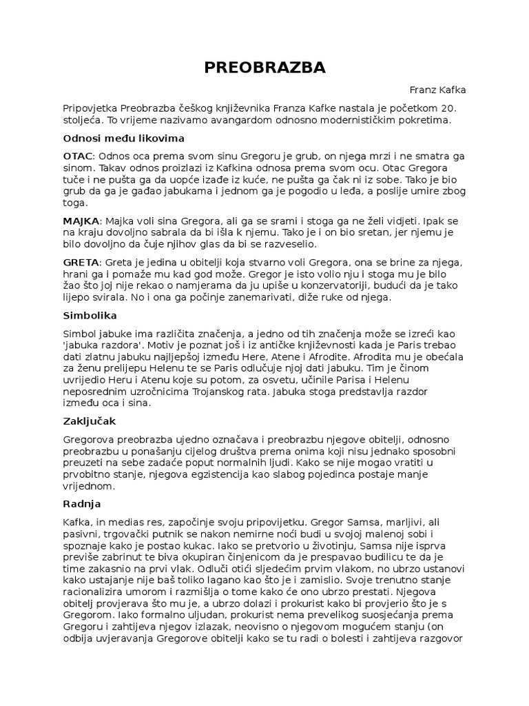 Franz Kafka Preobrazba Esej Pdf Free Download