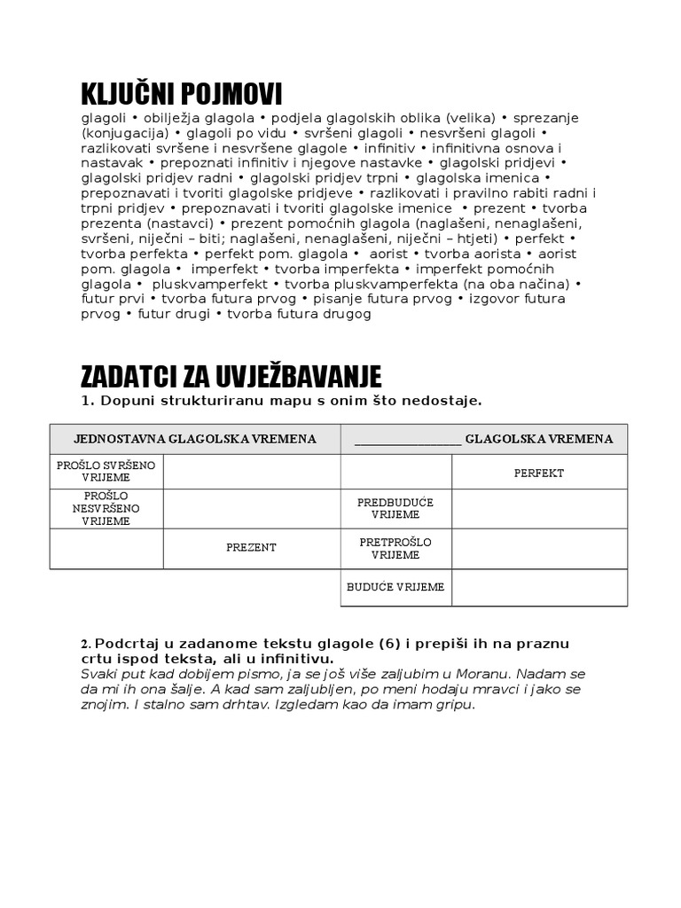 Glagolska Vremena Kljucni Pojmovi I Uvjezbavanje
