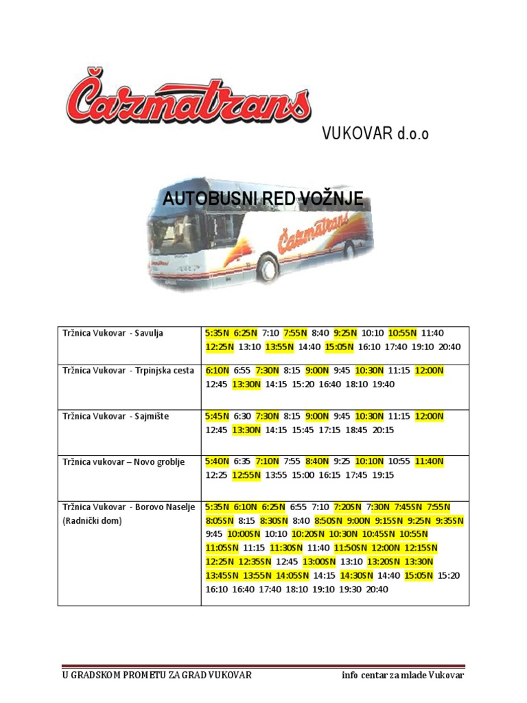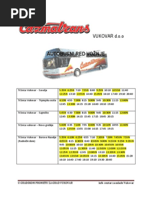 Red Voznje Autobusnih Linija Cazmatrans Grad Ilok Sluzbena
