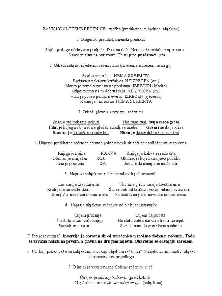 Zavisno Slozene Recenice Pronađi Podudarnost