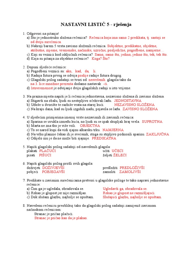 Nastavni Listic 5 Rjesenja