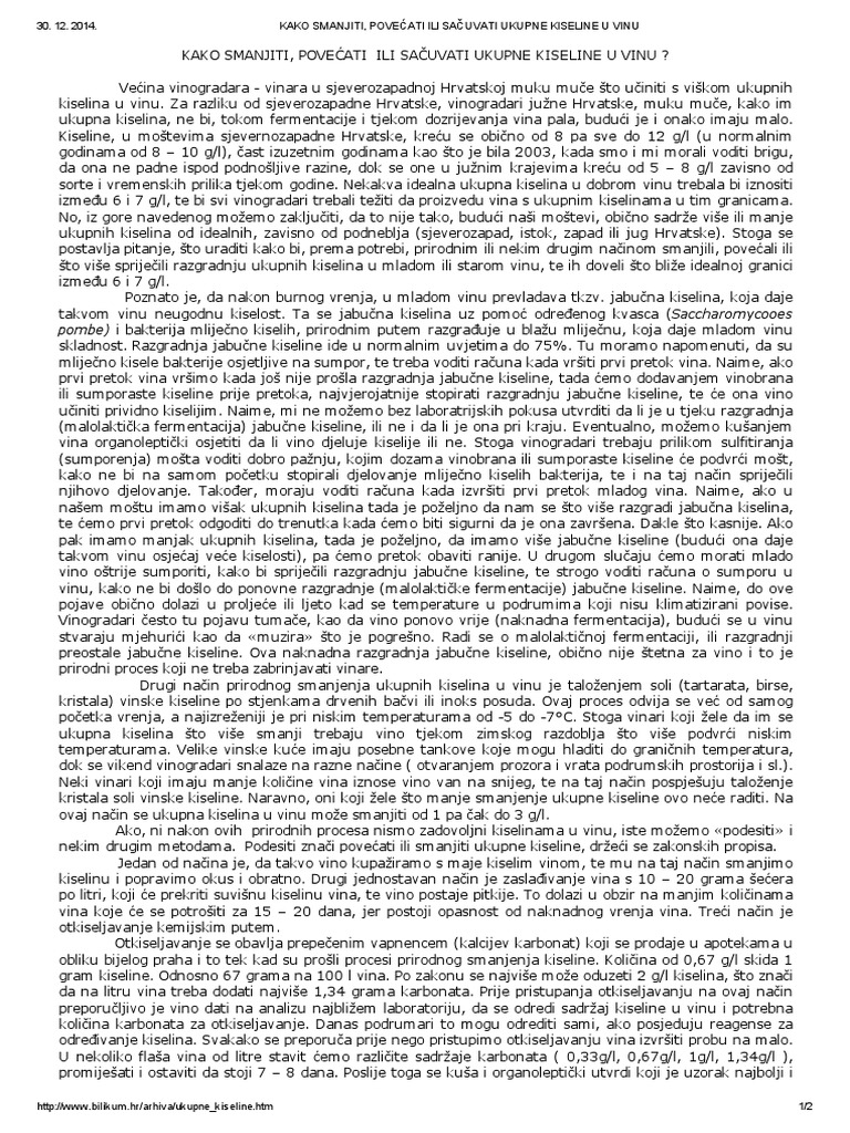 Kako Smanjiti Povecati Ili Sacuvati Ukupne Kiseline U Vinu