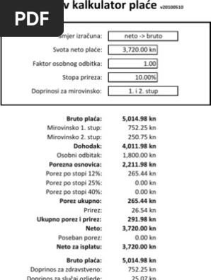 Izračun Plaće Bruto Neto