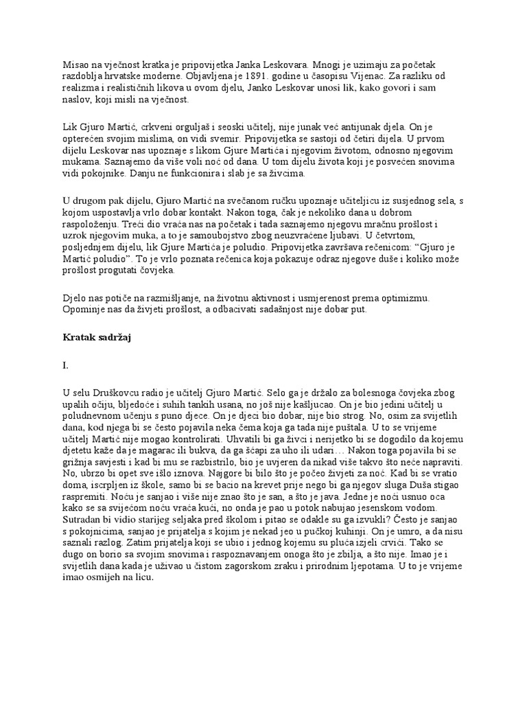 Misao Na Vjecnost Kratka Je Pripovijetka Janka Leskovara