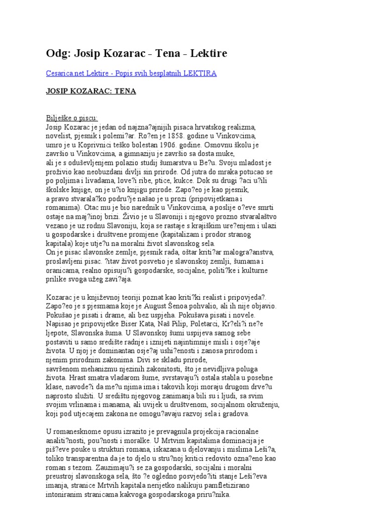 Tena Josip Kozarac Lektire
