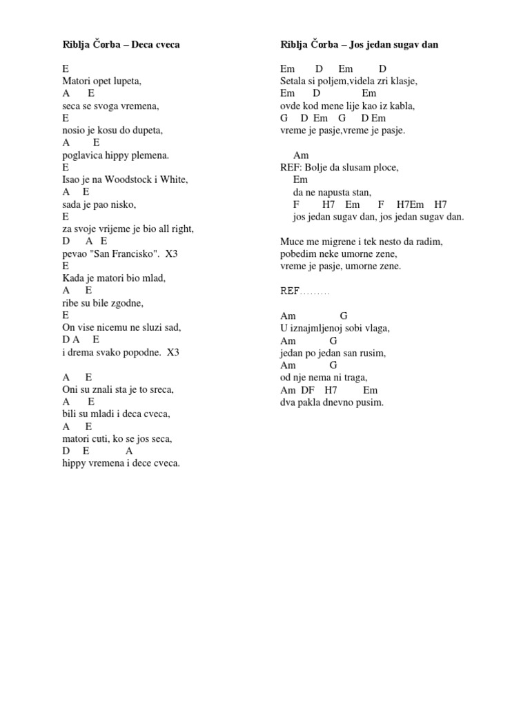 Tekstovi Pesama I Akordi Za Gitaru I Ostali Instrumente