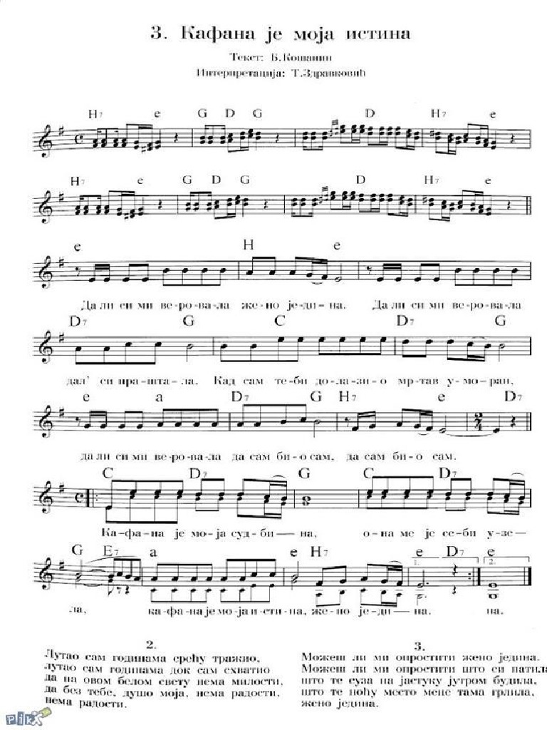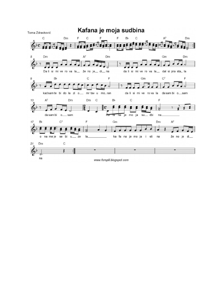 Note Domace I Strane Kafana Je Moja Sudbina Note Akordi Tekst