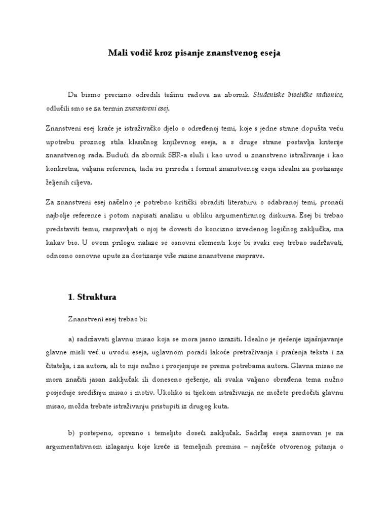 Esej Objasnjenje Kako Se Pise Esej I Jedan Primerak Rada Docsity
