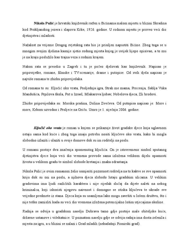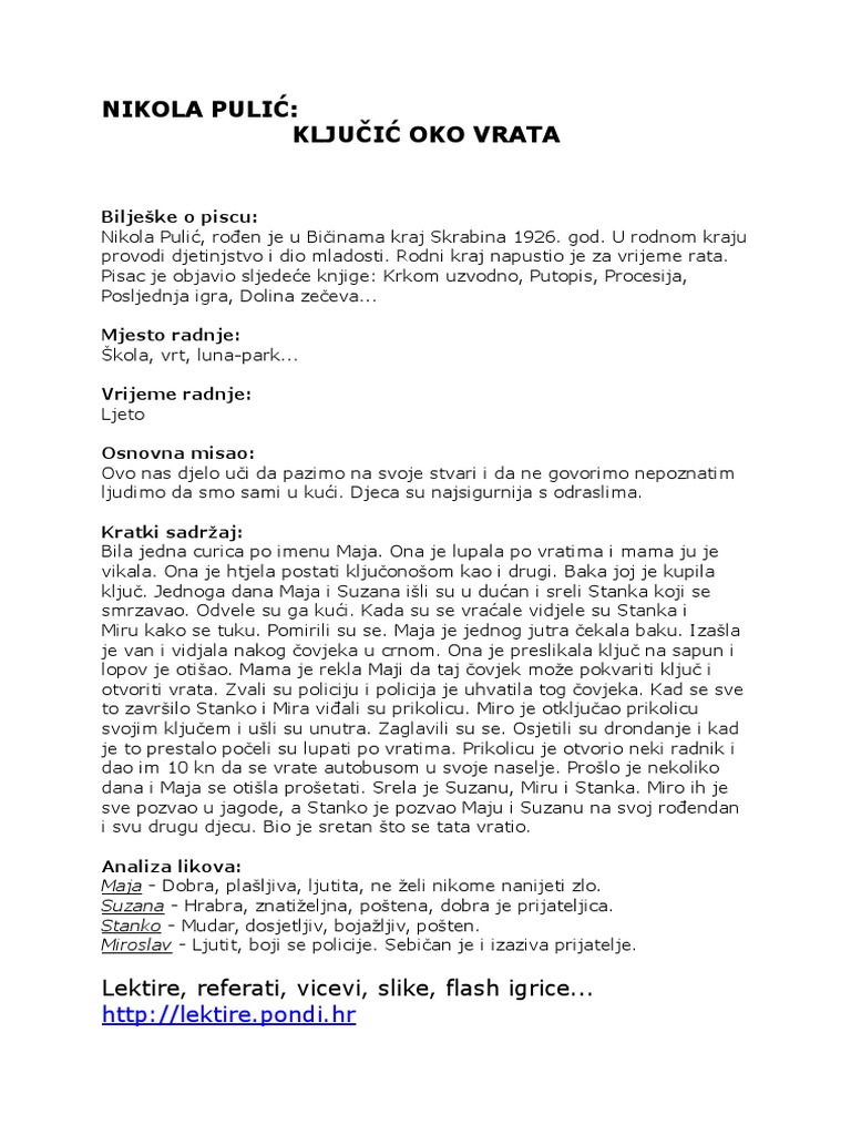 Kljucic Oko Vrata Nikola Pulic Lektire