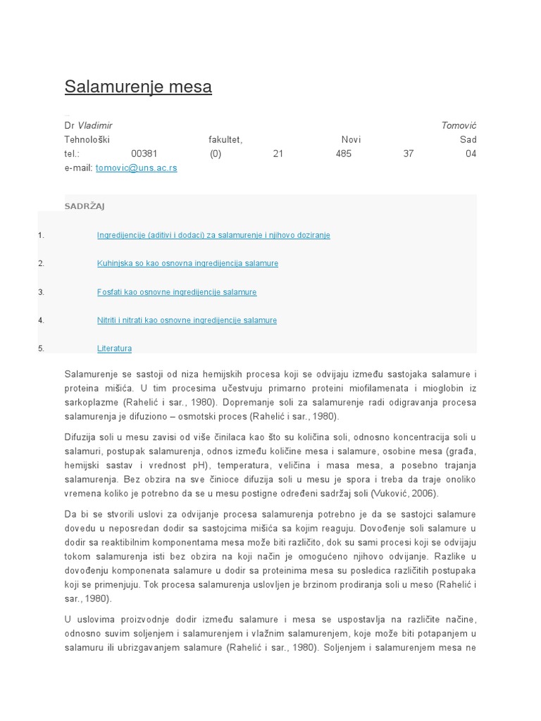 Salamurenje Mesa Tomovic Uns Ac Rs