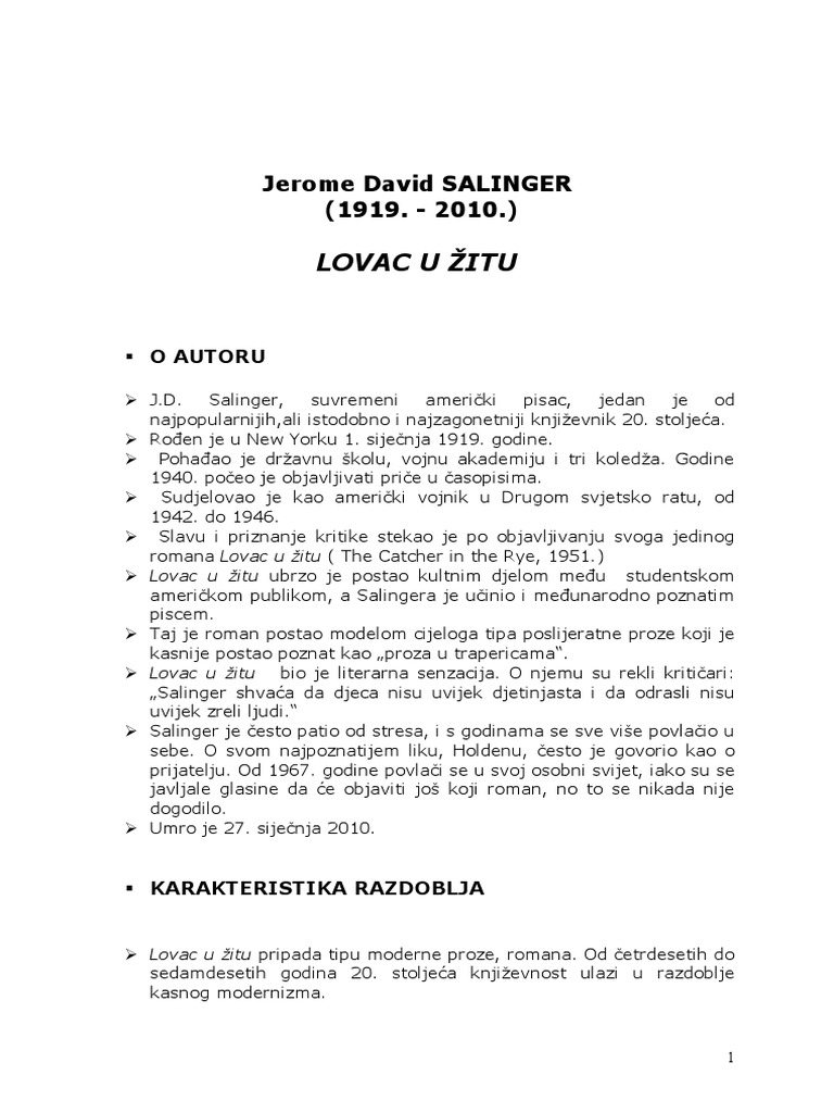 Zbirka Lektirnih Eseja Lovac U Zitu J D Salinger Wattpad