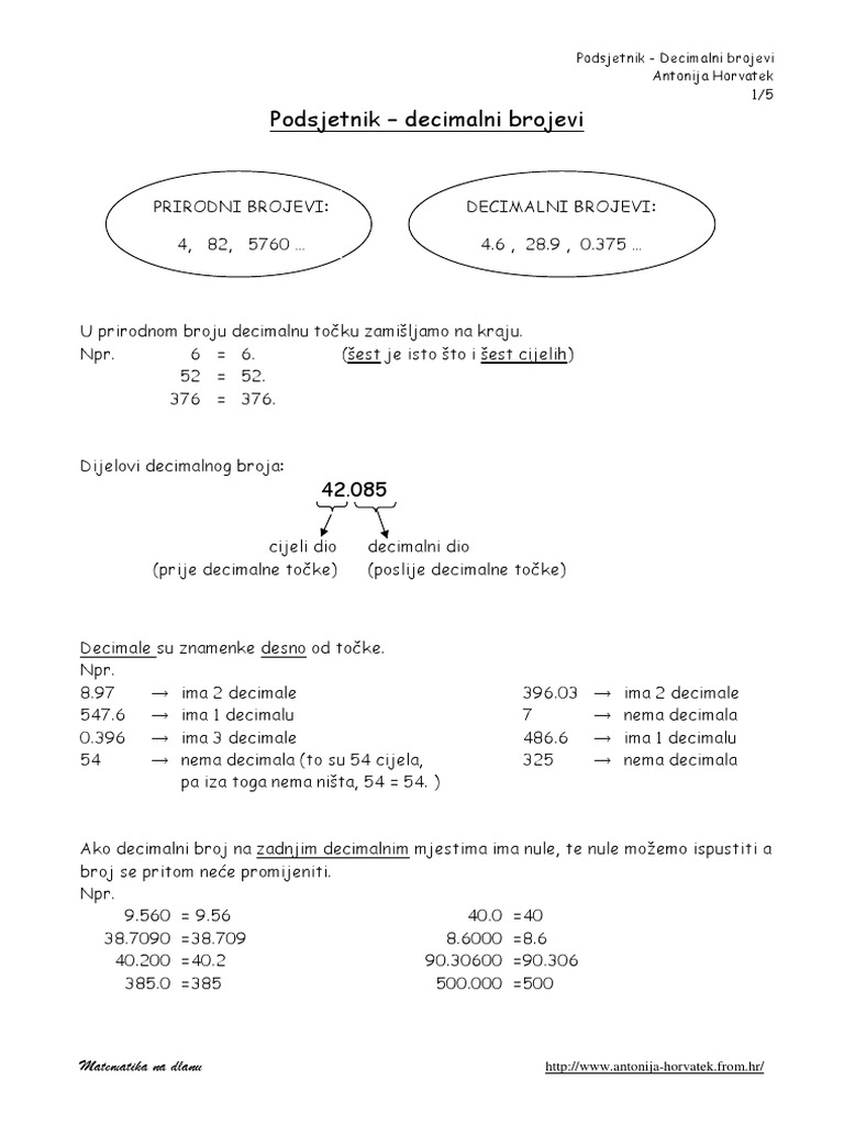 Podsjetnik Decimalni Brojevi